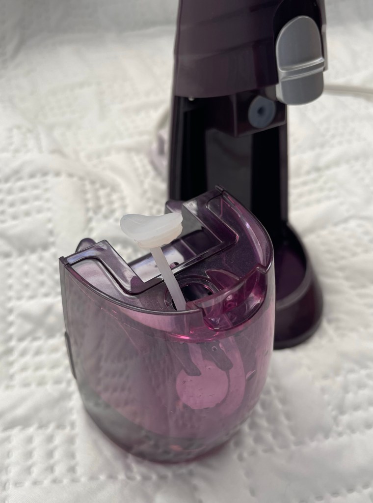 Probably the only thing I didn’t like about it was the bulkiness. We don’t have a lot of storage space, so this ends up hanging out in the open for a while like a piece of art. Having to put it away isn’t that difficult due to the wheels and the telescoping pole but it’s that little extra hassle. Actually another thing is if you are steaming a heavy piece of clothing or put multiple items on the attached garment hanger, it could tip the machine and make a watery mess. That worried me a bit…a water spill with electric machine.
