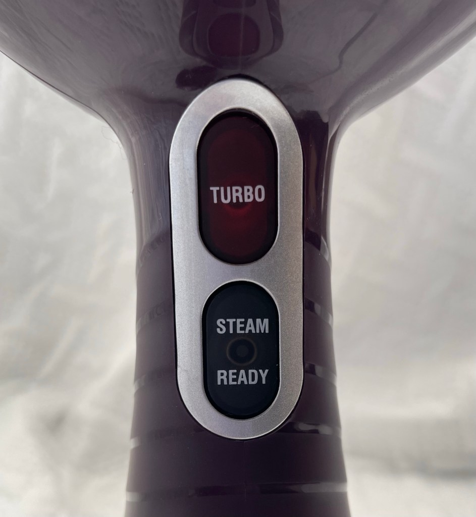 It was easy to fill up. The water reservoir is pretty small…about 1-2 cups of water. There is a big button on the back to turn the Conair steamer on. It heats up pretty quickly and has a nice even stream of steam. Despite the small water reservoir, I was able to do a few shirts without having to refill. I thought I would have to keep refilling but that wasn’t the case.