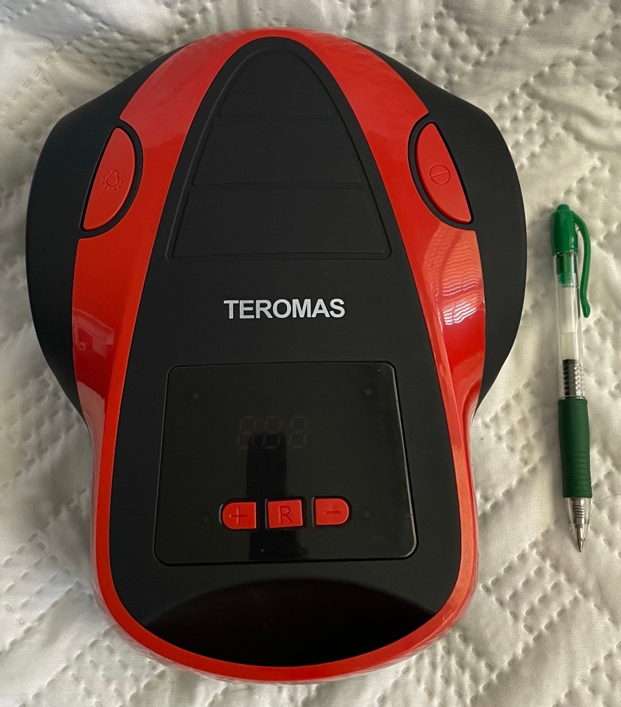 You can use the plus/minus sign to specify the pressure you want. Well, after setting the pressure to the desired amount, it wasn’t clear what to do. You are supposed to press the red button at the top right but those top red buttons, at first, looked like a design element to me rather than something functional. Maybe it’s more obvious to other people and people who read directions. The other red button turns on the flashlight in the front.